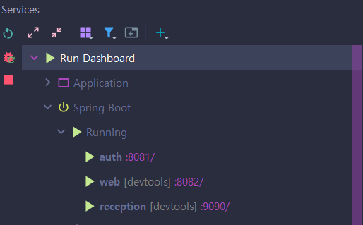 회사에서 개발을 할 때 마이크로서비스 구조로된 프로램을 개발하고 있어서 동시에 3개의 프로젝트를 run 한다.