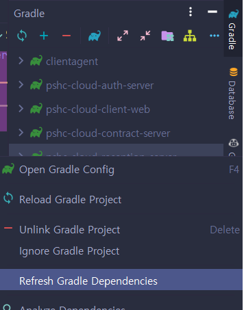 2. Gradle -> 작업 중인 프로젝트명 -> Refresh Gradle Dependencies